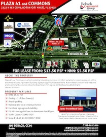 Plaza 41 and Commons is a high visibility, 5-building complex on US 41 suitable for retail, restaurant, office and medical uses. Pylon and building signage opportunities available. Active Retail corridor with national and local tenant presence. Close to Downtown Fort Myers, Central Business District and related activities.